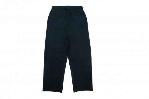 ストレートシルエットで、通常のスウェットパンツとは一線を回し独特のカタチと言えるでしょう。極端に深い股上がこのパンツ最大の特徴となります。